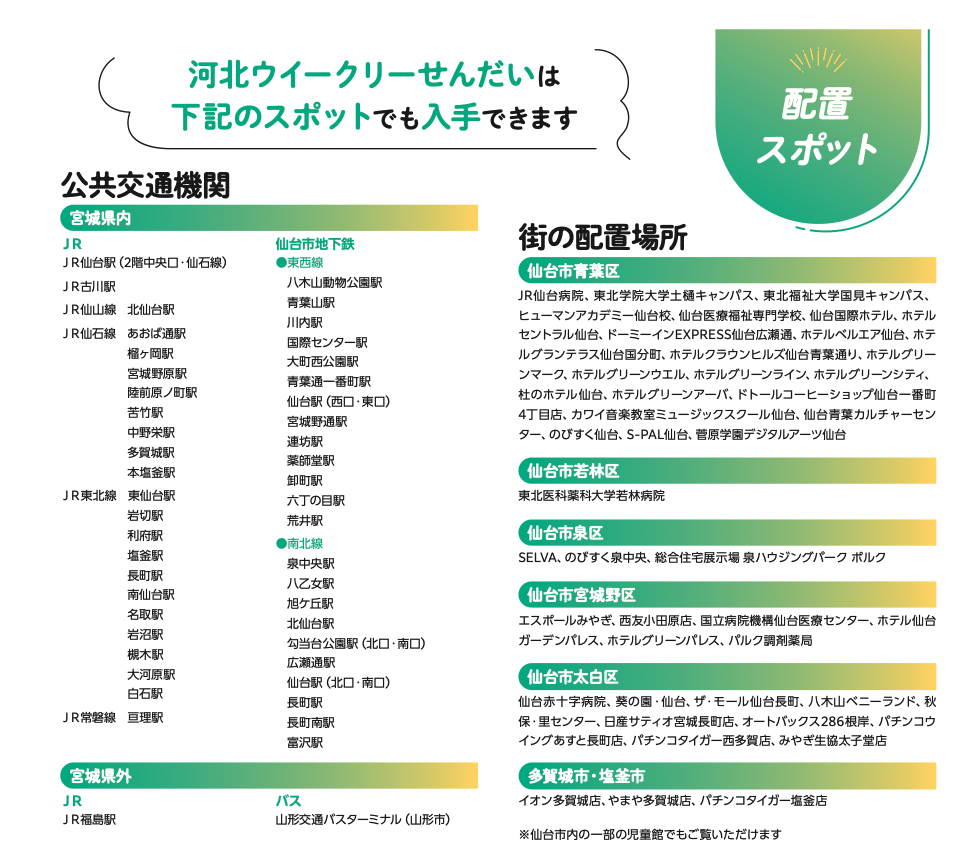 画像は「河北ウイークリーせんだい」の配布場所です。
